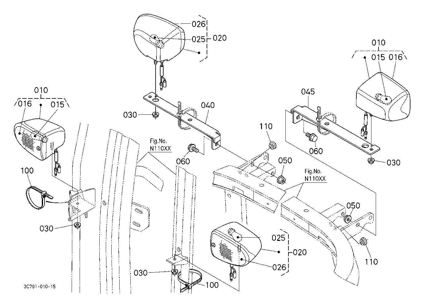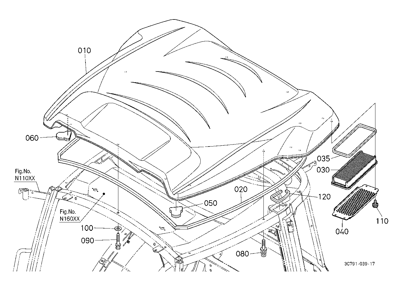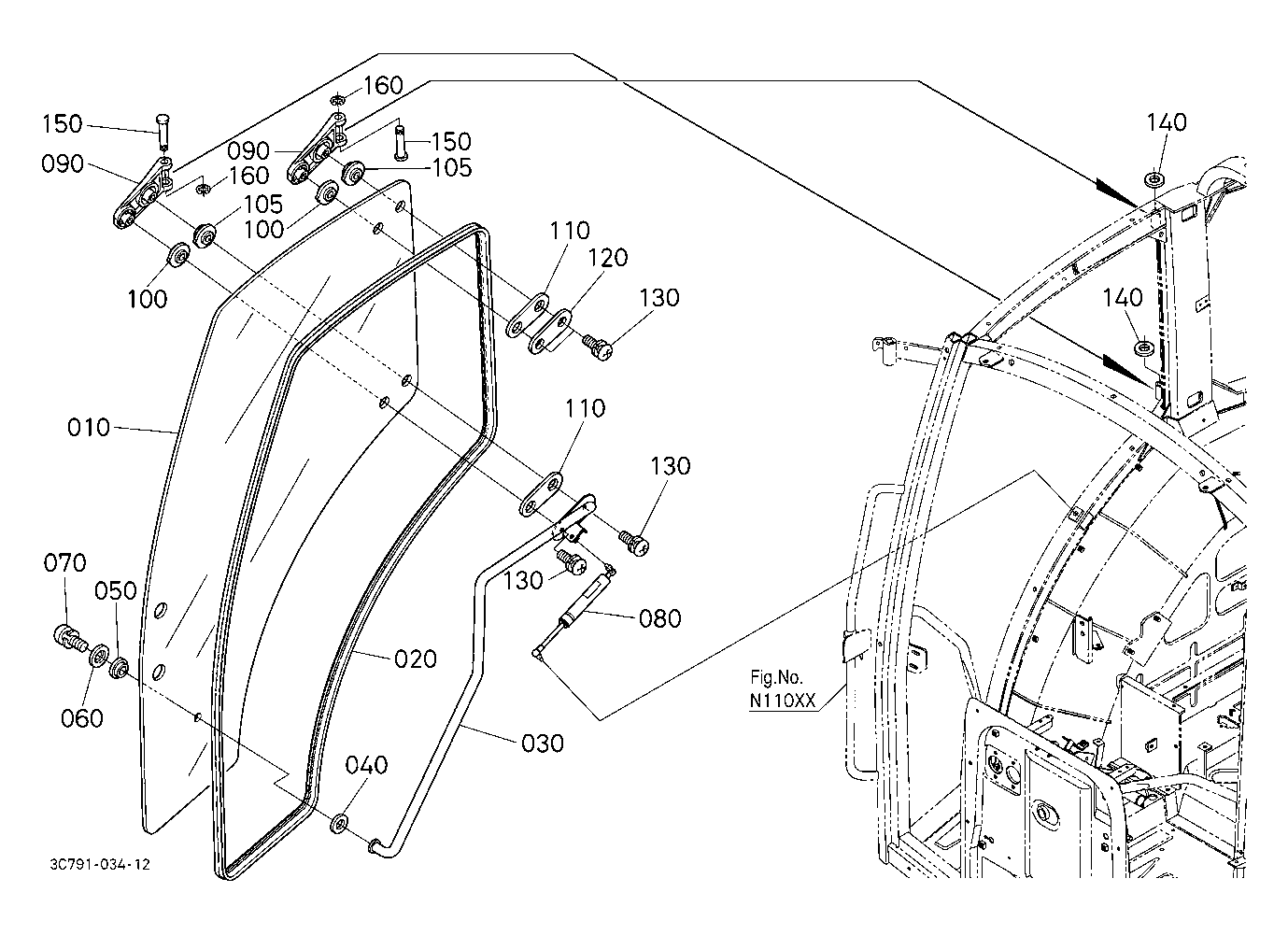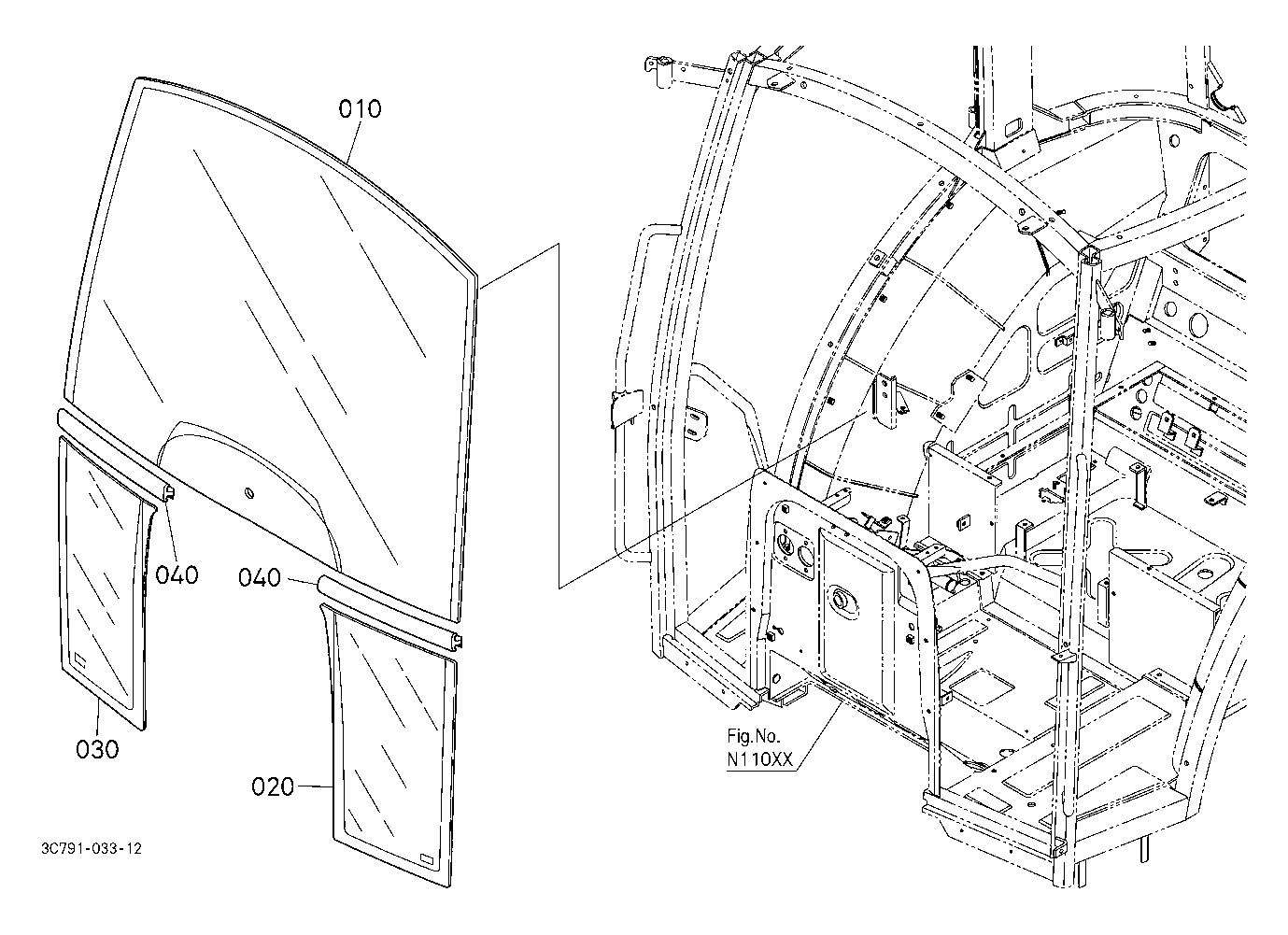 CAB N15002 REAR WINDOW [A] ## NOTE ORDER BY REF.No.020,030 and 040 NEW PARTS.